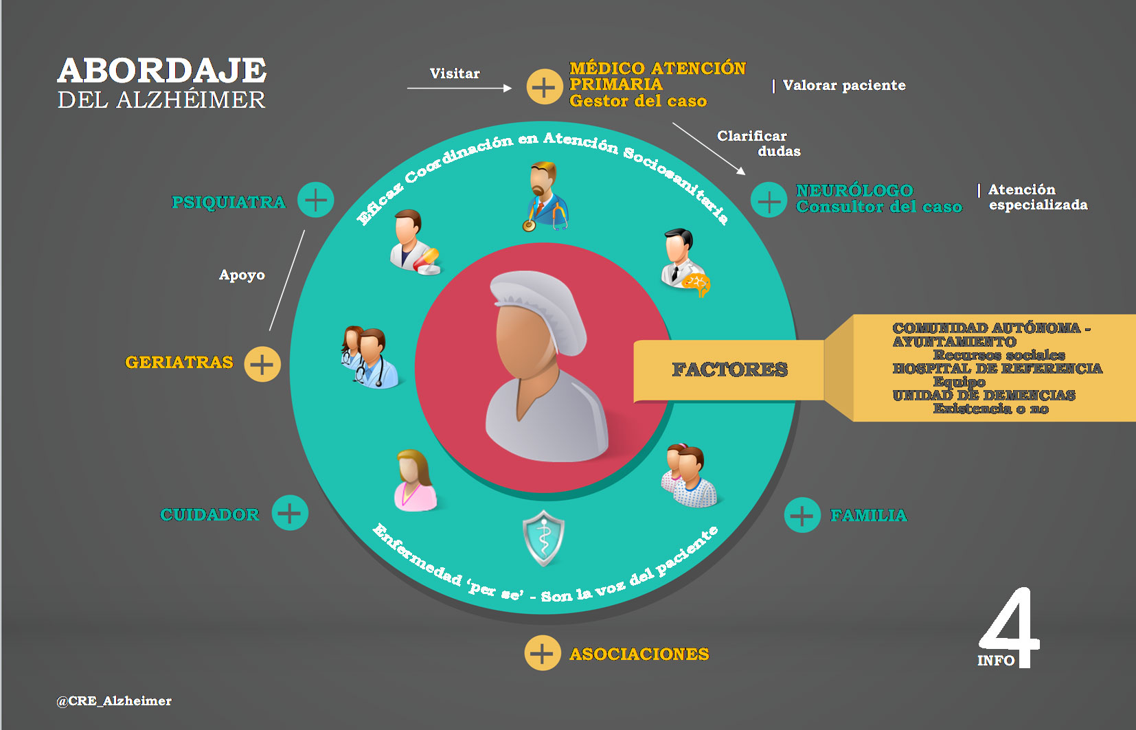 Según los datos recogidos en el citado informe, en esta cuarta infografía se analiza de forma esquemática el abordaje de la enfermedad de Alzheimer: