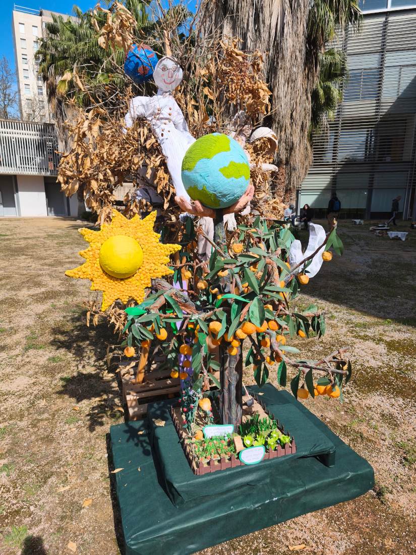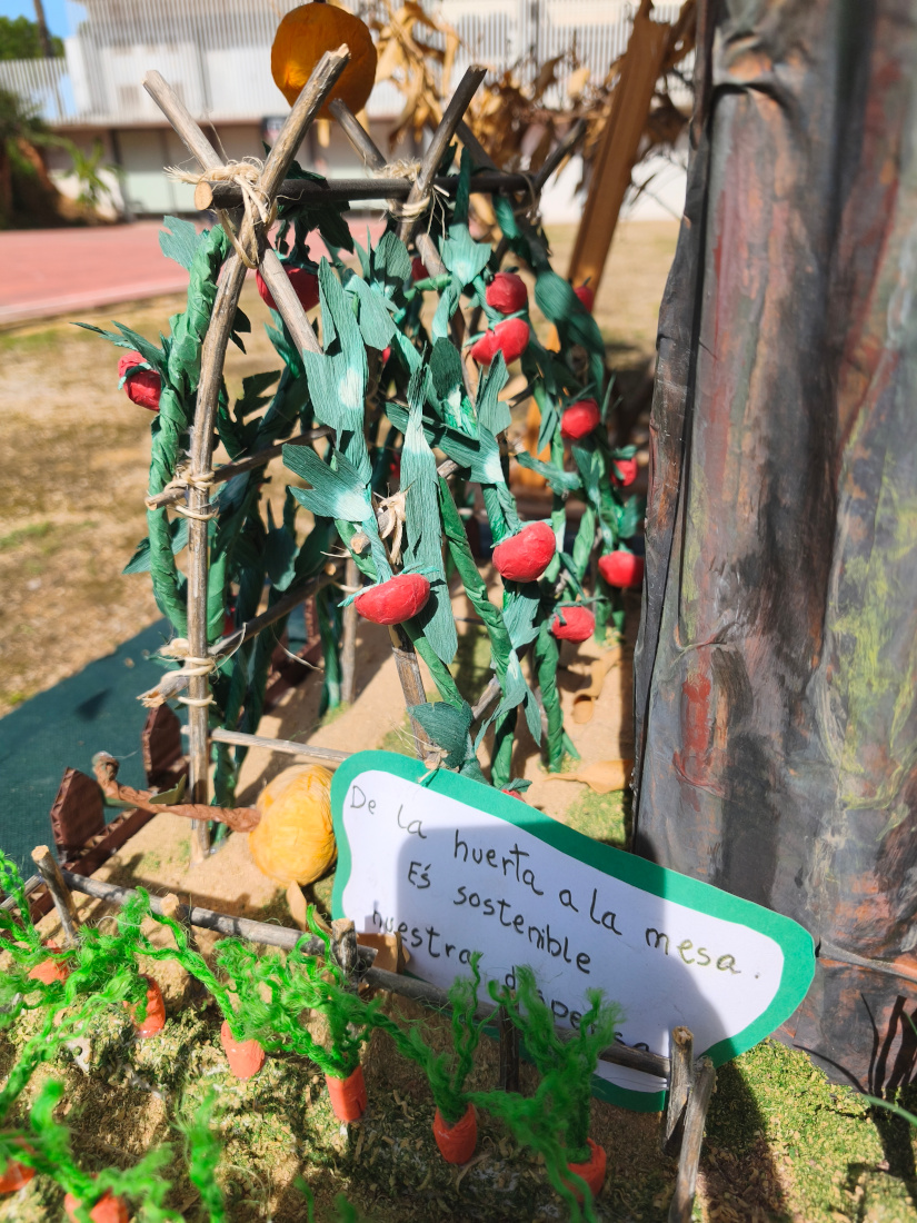 Por un lado, la creación rindió homenaje a la huerta valenciana y al consumo de productos de proximidad, resaltando la importancia de preservar estos valores como parte esencial de nuestra identidad cultural y de un modelo de vida saludable. La escena fallera representaba diversos elementos de la huerta y ponía en valor la alimentación sostenible basada en productos de la tierra.